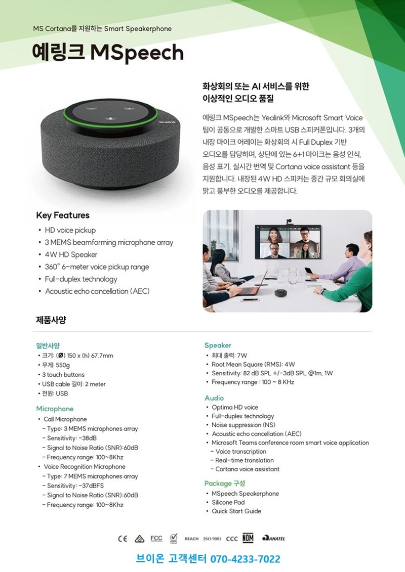 예링크 MSpeech음성회의·화상회의를 위한 이상적인 오디오 품질