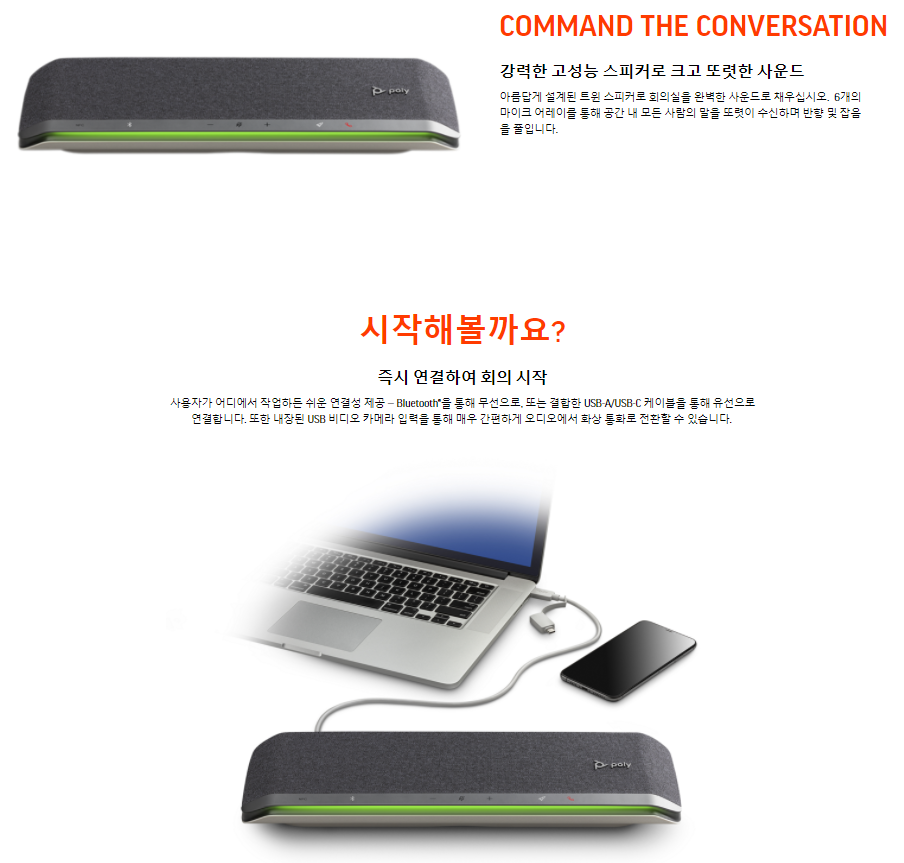 POLY SYNC60 블루투스 USB 스피커폰(중대형회의실용)